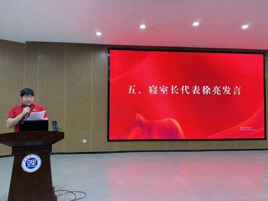 网格员合影结束后,网格员代表钟文静、寝室长代表徐亮、学习委员代表刘佳平分别从各自的职责出发,对台下的网格员、寝室长、班委发起倡议,希望大家共同努力,踏实工作,以饱满的热情和认真的态度投入到宿舍管理与学风建设中,营造一个良好的学习和生活环境。