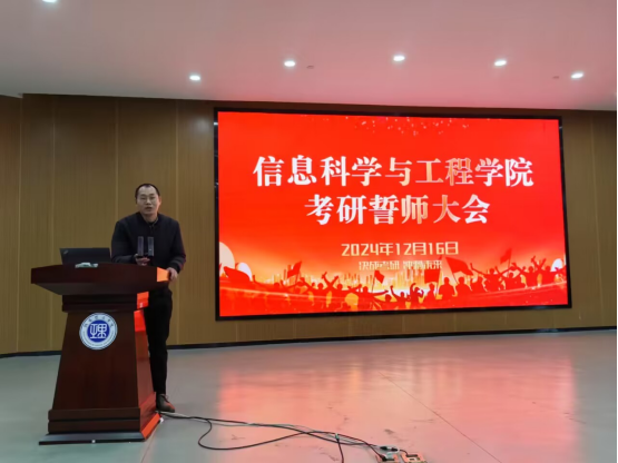 周峰作为班主任代表发言,他以亲身经历和感受,鼓励同学们在考研的道路上要坚持不懈,沉着冷静,发挥出自己的最佳水平。