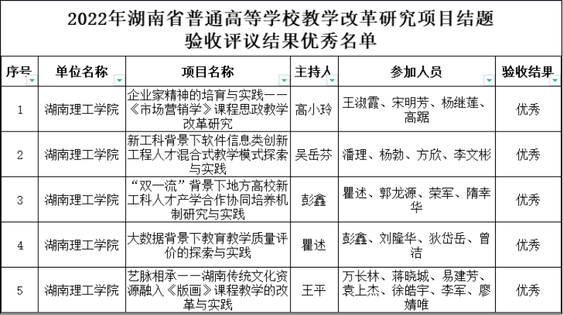 热烈祝贺bevictor1946韦德官网吴岳芬、彭鑫两位老师主持的省级教学改革研究项目优秀结题!这是近年来我院第4、第5个优秀结题的项目。同一年优秀结题2项,这是bevictor1946韦德官网首次。省级教改项目结题优秀比例约15%,该项成绩来之不易。此外,今年还有赵林、谢文武、李志杰、伍建辉、欧先锋等老师主持的省级教改项目顺利结题。各项目主持人及团队成员在项目研究期间,扎实推进教学改革,在提升人才培养质量的探索和实践方面均取得了突出的成效。