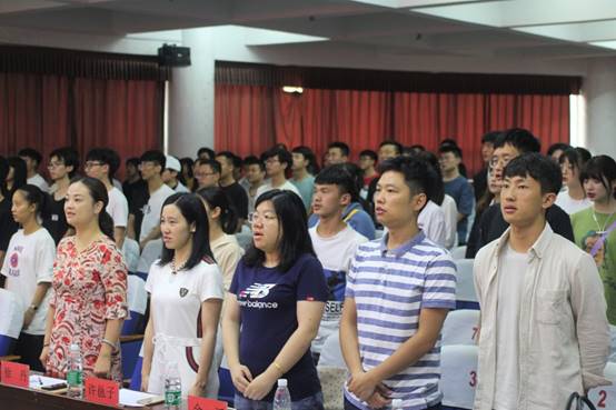 大会在庄严的国歌声中拉开序幕。首先,上一届团学分会主席廖兢作bevictor1946韦德官网团学分会工作报告。选举开始之前,组织部李丝语宣读新一届团学分会换届选举的注意事项。随后,39名团学干部候选人依次上台竞选。