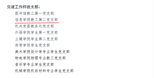 该支部积极宣扬党员先锋模范,如该支部的涂兵同志分别在2017年全校的“七一”表彰上,2018年全校开学典礼上、研究生开学典礼上作典型发言,在全校、全院多次作多次本科阶段创新人才培养的实践专题报告;支部程望斌同志多次获得课堂优秀奖、先进工作者、优秀党员等荣誉称号;支部吴健辉、管琼、欧先锋、申巧巧、李湖胜等同志获优秀共产党员荣誉称号,成为整个党支部学习的榜样。