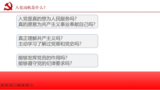 夏玉宁从“为什么选择入党”、“如何行动才能入党”、“当代老员工的责任和使命”三个方面为同学们讲解如何理清入党条件,端正入党动机,如何以实际行动争取早日加入党组织的怀抱。夏玉宁在讲解入党动机时,向同学们提出了“入党是真的想为人民服务吗?”“真的愿意为共产主义事业奉献自己吗?”“真正理解共产主义吗?”“主动学习了解过党章和党史吗?”“能够发挥党员的作用吗?”“能够遵守党的纪律要求吗?”六个问题,引发了同学们深刻的认识与思考。