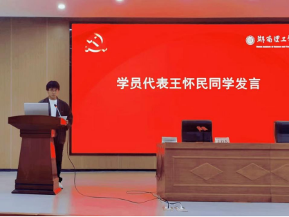 王怀民同学作为学员代表发言,他以习近平总书记在党的二十大开幕会上对广大青年的期望为切入点,与大家分享作为老员工参加党课培训的意义与责任,同时代表全体学员向党组织作出表态,将严格遵守学习纪律,以实际行动向党组织靠拢。