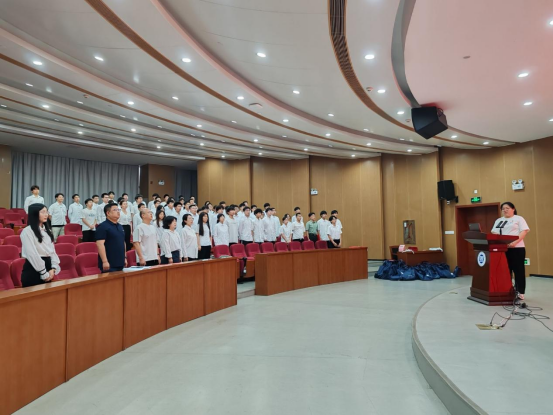 新党员宣誓大会在《国际歌》声中拉开帷幕。刘照馨宣读预备党员、正式党员批复,王艳芬带领全体新党员面向党旗宣誓。