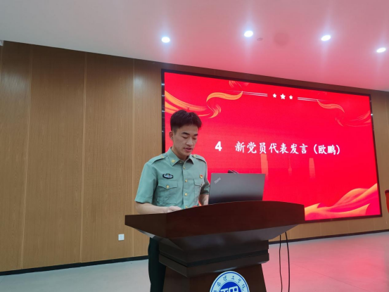 宣誓结束后,新党员代表欧鹏结合自身经历,从作为一名老员工的价值、党员的价值以及新时代中国青年的价值三个方面分享了心得感悟;入党积极分子代表王琦讲述了自己真正了解并想要加入共产党的过程,从不断学习、做好榜样、服务他人三个方面讲述自己的做法,以在座的党员为榜样继续努力,争取早日加入党组织。