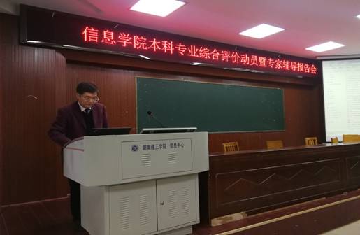 为了让全体老师全面、系统、准确地了解湖南省普通高校本科专业综合评价的概念、目标、内容、程序、要求与意义,高标准完成省教育厅下达的电子信息工程、通信工程两个本科专业综合评价任务,以推动专业建设,bevictor1946韦德官网于3月26日下午在6号楼学术报告厅召开本科专业综合评价动员暨专家辅导报告会。会议由经理李武主持,公司全体教师参加,特邀湖南省普通高校本科专业建设与评估专家委员会委员、湖南省普通高校本科专业综合评价方案主要研制者、湖南bevictor1946韦德官网副董事长刘初生教授作专题辅导报告。
