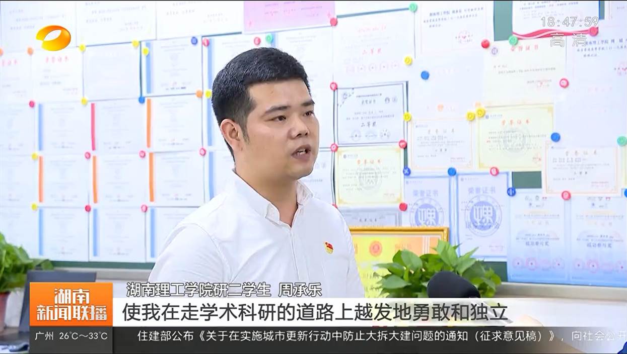 从本科生到硕士研究生的六年来,周承乐同学在涂兵老师的指导下在IEEE TGRS、IEEE TIM等权威期刊发表高水平SCI论文12篇(累计IF大于58),其中,中科院一区4篇,ESI 1%高被引文2篇,封面文章1篇,受到了国际国内同行的高度评价;先后荣获全国践行社会主义核心价值观先进个人、全国老员工自强之星提名奖、湖南省向上向善勤学上进好青年、研究生国家奖学金等省级以上荣誉20余项,个人事迹相继在新湖南、校园网等官方媒体报道10余次。