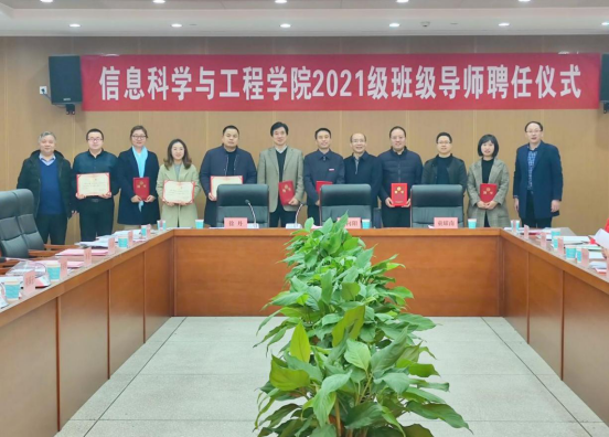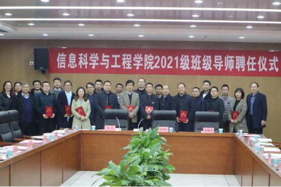 甘向阳和童耀南为班级导师颁发聘书,公司领导和21级全体班级导师、班主任合影留念。
