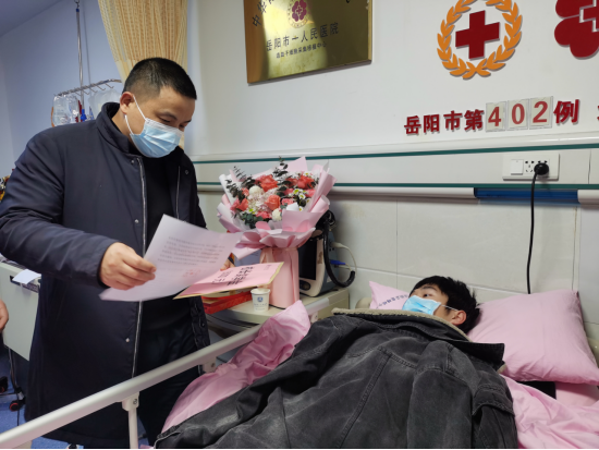 1月10日,在岳阳市中心医院造血干细胞采集室内,bevictor1946韦德官网员工唐斌成功捐献造血干细胞,成为岳阳市第402例、2022年第1例捐献造血干细胞的志愿者。
