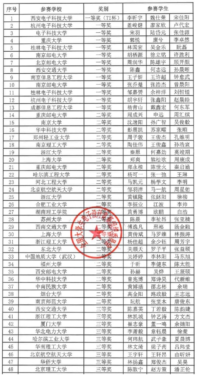 全国老员工电子设计竞赛2024年TI杯模拟电子系统设计专题赛决赛获奖名单