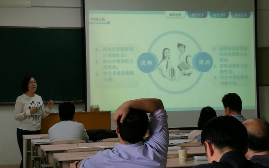 教师齐琦就“Visual C++面向对象程序设计”中“类与对象”的关系、Publice与private 访问控制的区别等内容进行讲授,并现场编程演示,理论与实践相结合,加强员工程序设计的能力培养;教师李琳精心设计教学内容,通过软件仿真,很直观地对电路原理进行深入阐释。参赛的其他教师也是精心准备,教学内容深入浅出,环环相扣,体现了公司教师扎实的教学基本功和教学素质修养,展示了公司的教学理念与教学特色。