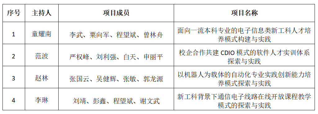 近日,湖南省教育厅下发了《关于公布2019年普通高校教学改革研究项目立项和结题验收结果的通知》(湘教通[2019]291号),公司童耀南、范波、赵林、李琳4位老师申报的教学改革研究项目获批立项,立项数量在全校各公司中排名前列。这是前不久公司2位教师分别获得省级精品在线开放课程认定和立项以来的又一喜讯。