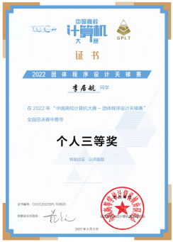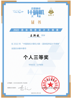近期,第7届中国高校计算机大赛——团体程序设计天梯赛顺利结束,bevictor1946韦德官网计算机类等本科专业生喜获全国团体铜奖1项和全国个人铜奖2项。