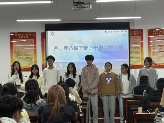 接着王艳芬颁发第七届团学干部、干事聘书,以资鼓励。最后团学新一届成员依次进行自我介绍,在新成员自我介绍环节,各部门成员以饱满的热情依次亮相,通过风趣幽默的语言介绍自己的专业、兴趣及加入部门的初衷,展现出蓬勃的朝气与积极向上的精神风貌。现场互动频繁,掌声与笑声不断,快速拉近了新老成员间的距离。