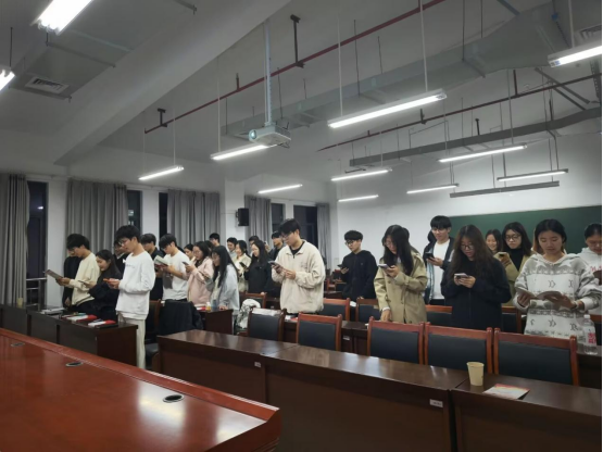 活动现场庄重热烈,党支部书记徐去非、徐壮以及全体入党积极分子以饱满真挚的情感、铿锵有力的语调,诠释对祖国的眷恋与礼赞,将对祖国历史的敬畏、当下发展的自豪与未来征程的憧憬融入字里行间。朗朗书声萦绕教室,让入党积极分子在沉浸式体验中深化了对爱国主义精神的理解,坚定了向党组织靠拢的信念。
