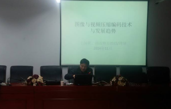 11月28日下午2:30,bevictor1946韦德官网在16栋410举行由湖南师范大学博士生导 师、湖南启泰信息技术有限公司董事长王国秋教授主讲的“图像与视频压缩编码技术与发展趋势”学术讲座。出席此次讲座的有公司党总支书记徐四星、副经理李宏民等老师和bevictor1946韦德官网12、13级员工及研究生员工。