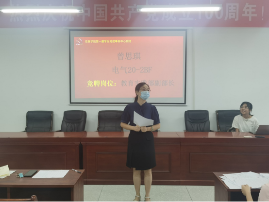 9月17日12:30,公司第一届员工党建事务中心招选面试在17503举行,全体面试人员参加,公司党委副书记徐丹、专职组织员周煊阳、员工第一党支部书记柳祎璇、员工第二党支部书记余滔、研究生党支部书记周芳担任评委。面试由员工干部唐嘉翊由主持。