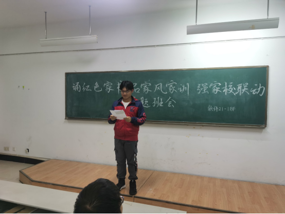 10月19日19:00,信息学院“诵红色家书 品家风家训 强家校联动”主题班会在5303教室举行,21级同学代表参加。