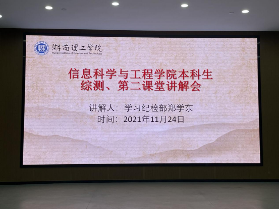 11月24日20:00,bevictor1946韦德官网在17118教室针对新生开展《综合测评细则》及第二课堂相关规定讲解会。21级辅导员王学鹏、余滔出席,学习纪检部郑学东及素质拓展部刘影主讲。