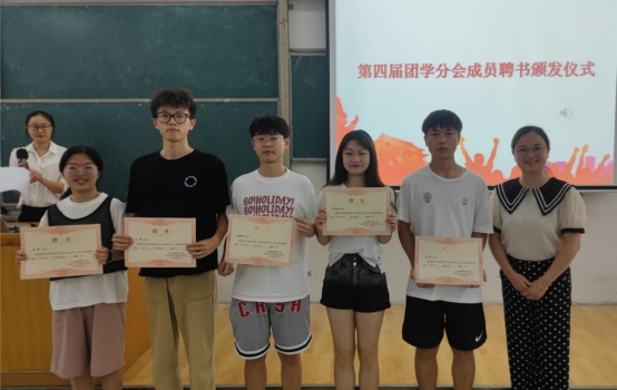 徐丹、学工办全体辅导员老师为第四届团学干部干事颁发聘书。