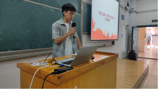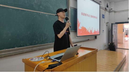 贺鸿凯作为第五届新任员工干部代表发言,他引用“要做青年友。”希望团结带领新一届的团学成员们树立正确的舍得观,充分发挥自身“桥梁”作用,在新一年的团学工作中积极主动、不懈奋斗、努力拼搏,共创信息团学新风采、新气象、新未来。