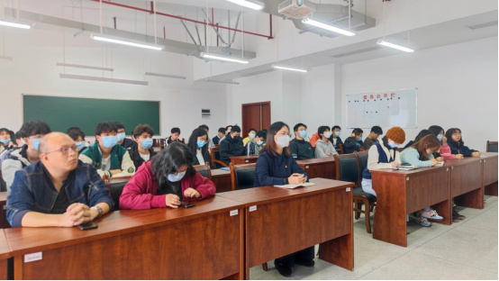 在观看直播前,陶海兰给在场的同学们提了三个建议:一是认真听讲,学习理论知识;二是积极互动,交流所思所感;三是做好传承,形成学习热潮。本次直播活动邀请到马克思主义公司周蓓博士和各院优秀员工代表开展以湖岸说“理”——青年当“志”强为主题的讨论会。直播中,周蓓围绕“有崇高的理想信念”、“有高尚的道德品质”、“有高强的本领才干”和“有天下兴亡、匹夫有责的担当精神”四个方面,与员工们交流并分享了党的二十大精神心得,周蓓表示,当代青年要争做有理想的新时代优秀青年,要成为能担当民族复兴大任的时代新人,当代青年生逢其时,未来的舞台无比广阔,是祖国的未来,是民族的希望。