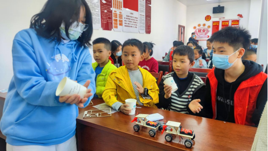志愿者们刚到达社区,就受到了小朋友们的热烈欢迎。活动过程中,志愿者们协助小朋友们制作好精致的手工制品,一起观看科普视频。在最后的游戏环节,小朋友们踊跃参与,收获了奖励,脸上洋溢着幸福的笑容。