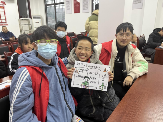 在志愿者的宣讲下,小朋友们对法律有了初步的了解,并能快速准确的回答志愿者们提出的问题。随后,志愿者与小朋友们一起完成有关法律手抄报的制作,观看了普法视频。活动过程中,小朋友们踊跃举手,气氛活跃融洽。