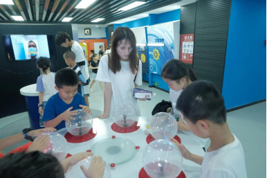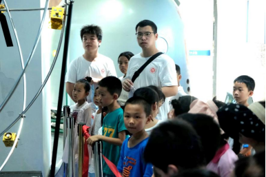 志愿者和小朋友们共同参观了中国航天火箭和空间站对接模型,了解中国航天故事和航天精神。小朋友们在参观过程中,还亲身体验了各种科学装置、科学小实验,科学的奇妙让他们乐在其中,科学种子深深扎根心底。