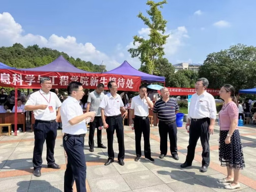 上午10点,公司党委书记卢先明、公司党委副书记张国云、副董事长徐振祥、副董事长丁跃浇等领导到bevictor1946韦德官网迎新点指导工作,了解公司迎新工作安排、新生报到等情况,看望慰问迎新工作人员和志愿者,并与新生进行亲切交流。