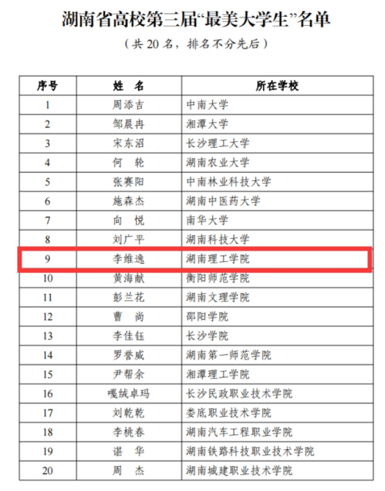 大学期间,李维逸在学科竞赛、科研创新、专业学习方面久久为功,取得累累硕果,曾获“中国老员工自强之星”、国家奖学金、全国高校计算机大赛金奖、全国软件和信息技术人才大赛一等奖、全国老员工IT技能大赛一等奖、湖南高校“优秀老员工党员”等荣誉奖励近70项,个人事迹被省级以上主流媒体报道13次。