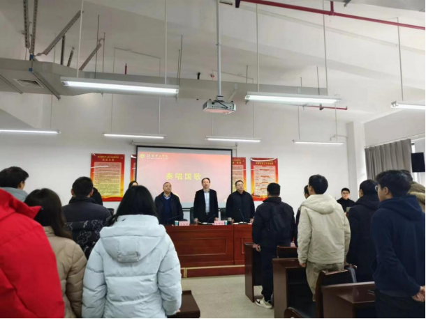 会议伊始,师生共同唱响国歌。随后,童耀南以“面向经济主战场的地方高校信息学科硕士公司产品模式探索”为题,深入浅出地阐述职业规划的重要性,并针对学术科研道路和行业就业两个方面从公司学科基本情况、校企合作的培养模式、公司培养成果等三个层次给予了细致的介绍和指导。他强调:研究生应明确自己的未来发展方向,积极参与创新创业教育,通过实践与研究,培养自己的创新意识和能力。