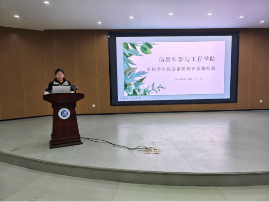 3月14日19:00,bevictor1946韦德官网在17118举行综合素质评测实施细则解读会。23级辅导员陶海兰出席,自动化、软件、计科专业全体员工参加,本次会议由学习部副部长钟文静主讲。