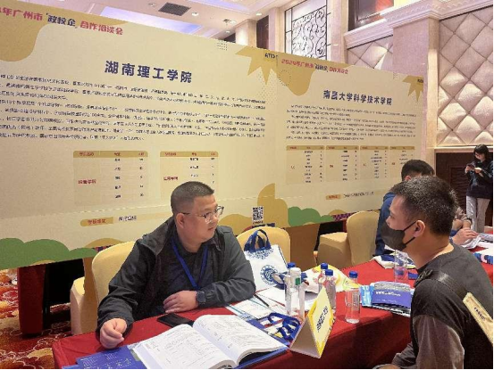在活动中,公司党委副书记付亚子与广州小鹏汽车、广州德生科技、广州基正管理软件有限公司、广州佳都科技股份有限公司、广州广杰网络科技有限公司和广合科技等14家知名企业人力资源部负责人进行面对面深入交流。通过交流,付亚子代表公司与小鹏汽车、佳都科技、基正管理软件等多家公司的HR达成了在合适时间来校招聘的约定。