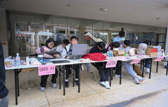 电脑爱心医院的志愿者们积极践行雷锋精神,凭借专业的技术知识,免费为师生提供电脑维修和清灰服务,用实际行动传递爱心与关怀。他们细心检查电脑故障,并迅速进行维修或清灰操作,体现义务服务的真正价值——爱心无大小,行动即力量。