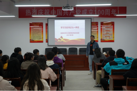 王学鹏带领同学们学习了习近平总书记建党一百周年讲话的主要精神,共同回顾了中国共产党百年征程,从众多历史事件中体会了中国共产党为中国人民谋幸福、为中华民族谋复兴的初心与使命。