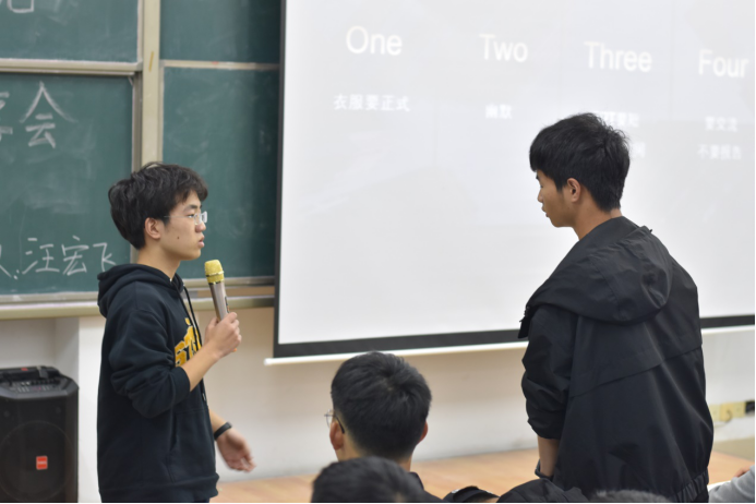 沈亚辉和赵卓则结合自己的参赛经历,为新生科普“大挑”即“全国老员工课外学术科技作品竞赛”。沈亚辉分享了如何组建优秀团队的经验,赵卓则指出了导师和课题的重要性。他们表示参与“挑战杯”竞赛是一次证明自己能力的机会,希望同学们可以不负韶华,把握机遇。