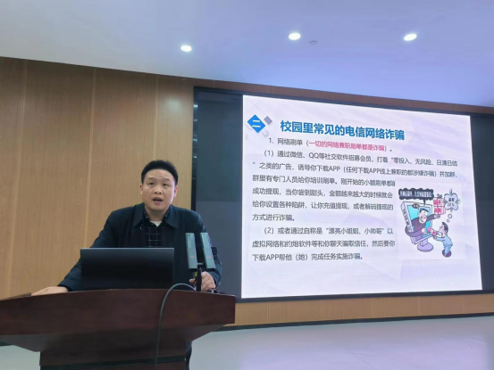 会上,谭良机结合丰富的案例和详实数据向同学们讲解了网络信息安全、校园常见电信诈骗、宿舍常见安全问题和校园反恐防爆等校园安全问题、注意事项和预防措施;并向大家示范讲解灭火器和消防栓的正确使用方法,给同学们呈现了一堂生动、实用的校园安全防范课。他希望各寝室长重视安全问题,做一名合格的安全哨兵,将校园安全内容传达给寝室成员,提高寝室成员的安全防范意识和自我保护能力。