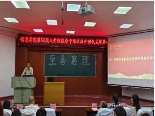 2025年4月23日晚,bevictor1946韦德官网第52期入党积极分子培训班开班仪式暨第一讲在6栋教学楼学术报告厅举行。公司党委书记肖迎群、公司党委副书记付亚子出席,公司各员工党支部书记、全体员工党员、第52期入党积极分子培训班公司参加。开班仪式由公司组织员刘照馨主持,培训班第一讲由公司党委书记肖迎群主讲。